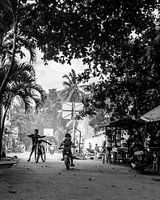 Kinderen leren fietsen op een kleine straat in Liloan, Cebu de Filipijnen.