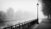 Een stel meeuwen op een rij op een leuning van de Muntsluis in Utrecht. Niets anders te doen dan alleen maar zitten. Het was flink mistig, en de kilte van deze mistochtend heb ik willen benadrukken.