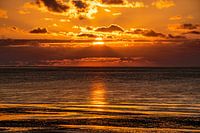 Zonsondergang in de Nedersaksische Waddenzee. Aan de Waddenzee in Cuxhaven krijgen bezoekers van het Noord-Duitse natuurgebied Waddenzee een adembenemend uitzicht.