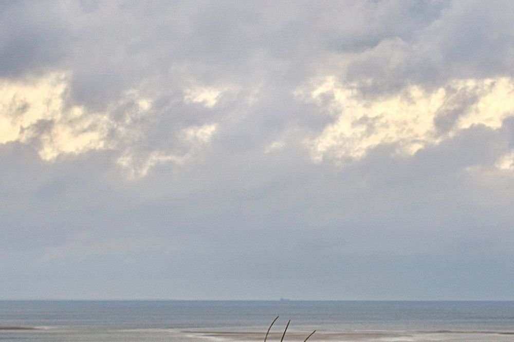 Op het strand van Blåvand. Uitzicht over de duinen naar de zee. Dramatische wolken in een woeste zee