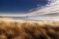 Op de achtergrond ziet u de oude pier van Haffkrug met de Oostzee in het prachtige zonlicht. 320099ays