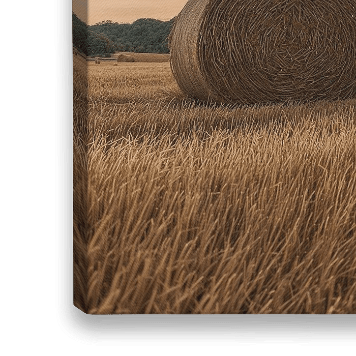 Een prachtige zonsondergang schildert de lucht in heldere kleuren boven een uitgestrekt veld waar de hooibalen in een vredige opstelling liggen. Een interessant spel van wolken vormt een mooi contrast met het goudkleurige veld. Is er storm op komst? In de verte is een sombere stemming te herkennen en de wind trekt aan. Maar alles lijkt…