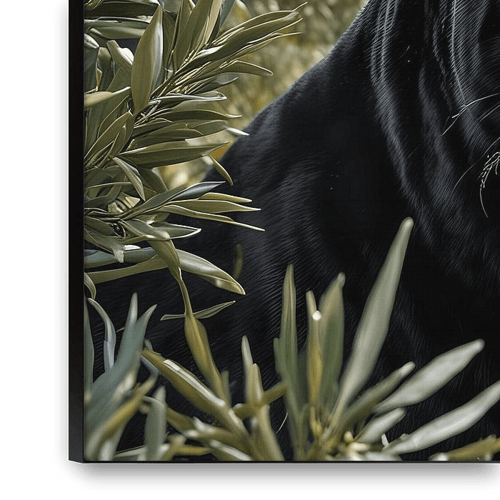 Krachtig, gefocust, imposant en toch ook een rustig beeld. Deze zwarte panter, staat tussen de olijfbomen om zich heen te kijken op zoek naar zijn prooi.