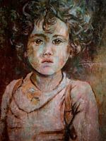 Dit schilderwerkje is een portret naar een foto van een mij onbekende jongen. De jongen heeft een trieste uitstraling. Weemoedig en verloren in zijn eigen gedachten.