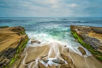 Prachtige rotsformaties met uitzicht op zee op een bewolkte ochtend. Uit La Jolla, Californië, VS. Bedankt voor je interesse in mijn werk.