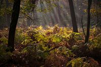 Over ‘Open plek in het donkere bos met zonlicht in stralend op de varens’ van Fotografiecor .nl