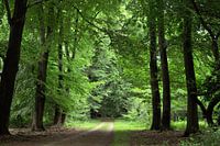 Een karrespoor doorkruit een open plek in het bos. Door de lichtval ontstaat een gelaagdheid in het beeld. De kijker gaat van donker naar licht weer naar donker. Laag naar hoog proberen de horizontale takken van de beuk het licht op te vangen. Het volle bladerdak werkt als beschutting tegen de elementen.