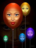 Een werk met een titel die meer kan betekenen dan opgeblazen ballonnen. Bijvoorbeeld na en avondje teveel gegeten te hebben. Een leuke toevoeging zijn de portretten met de maskers.
