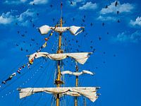 Opgerolde zeilen van een tallship, Sail Amsterdam 2015.