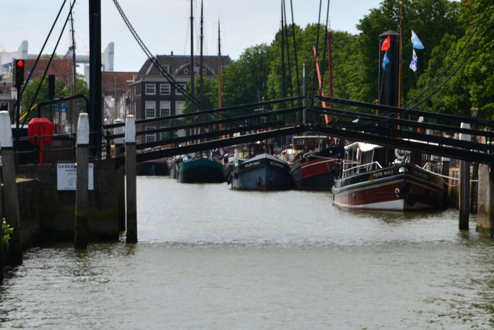 Vanaf het drierivierenpunt bij Dordrecht kan de haven bereikt worden door de schepen. Daarvoor moeten ze wel onder deze ophaalbrug door.