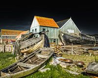 Historische vaartuigen op een werf in Workum met achterstallig onderhoud
