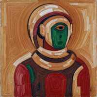 Dit schilderij is een levendige verkenning van identiteit en emotie, weergegeven door een mozaïek van kleur en textuur. Als kunstenaar heb ik geprobeerd de essentie van een menselijke figuur vast te leggen, niet in zijn letterlijke vorm maar als een symbolische weergave van innerlijke complexiteit. Het groene gezicht, dat centraal staat…