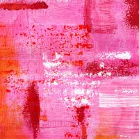 Gelaagd en gestructureerd acrylschilderij in zeer heet roze, magenta, dieprood, oranje en wit. Helder, leuk accentstuk voor moderne kamerdecoraties.