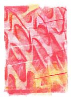 Acryl abstract - levendige rode en gele tinten creëren een abstract ontwerp met vloeiende, golfachtige patronen. De overlappende vormen en felle kleurcontrasten roepen een gevoel van beweging en energie op.
