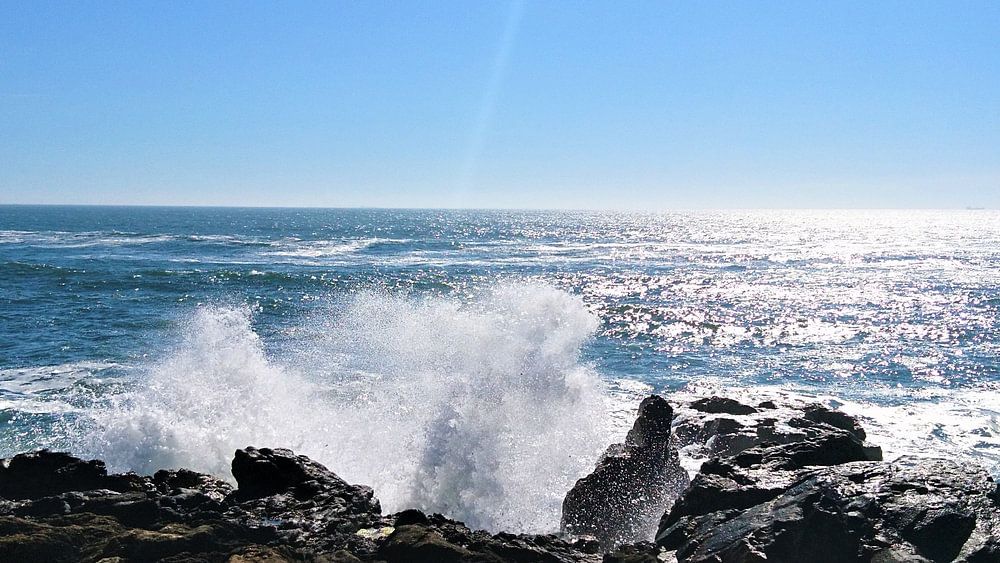 Opslaand water van de Atlantische oceaan, genomen op het strand bij Porto in Portugal in de zomer.