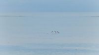 Minimalistische opname met strakke lijnen van een paar opstijgende Meeuwen boven de Waddenzee. Dit mooie moment zag ik tijdens een fietstocht langs de Dijk op Terschelling.