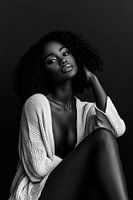De tijdloze zwart-witte esthetiek straalt zelfbewuste elegantie uit. Het contrast tussen de zachte lijnen en de sterke aanwezigheid creëert een fascinerende sfeer. Dit kunstwerk voegt een vleugje verfijning toe aan een woonkamer of slaapkamer en nodigt uit tot reflectie en inspiratie. Het spel van licht en schaduw vangt emotie in zijn puurste vorm.