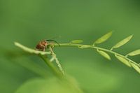 Tijdens een gewone wandeling vielen mij kleine snuitkevertjes op in de struikjes. Wat een grappige beestjes met die lange snuit. Een mooie scherpte op her beestje en de lijn van van het plantje geven een mooie balans in de foto.