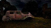 Foto van een van de auto's die achterbleven,in het door de duitsers vernielde dorp Oradour 1944 (fr)op enkelen na werd het dorp helemaal uitgemoord.