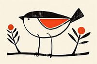 Details: vogel, tak, oranje, zwart, wit, minimalistisch, schilderij, kunst, buik, bessen