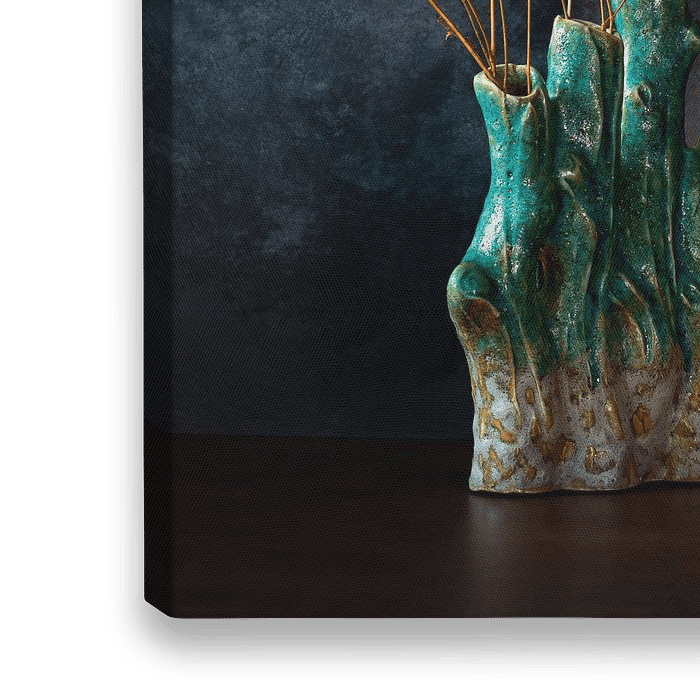 Oranje Gipskruis in bijzondere vaas. Mijn eerste stilleven gemaakt in mijn nieuwe studio, een voor mij nieuwe tak van fotografie, prachtig groot aan de muur.