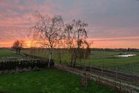 Orange sunset over farmland and trees at the Dutch countryside near Echt, the Netherlands