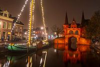 Campagne Orange the World Gebouwen en 'landmarks' worden oranje verlicht in het kader van wereldwijde actie tegen geweld tegen vrouwen. Friese actie is in Sneek, waar de Waterpoort oranje wordt verlicht.