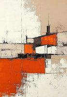 Oranje Abstract | Rustgevende Oranje Abstractie - Dit abstracte schilderij kenmerkt zich door zijn krachtige compositie van oranje en beige vlakken met subtiele lijnstructuren die een kalmerend en harmonieus gevoel geven.