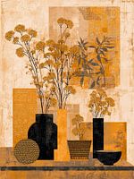 Details: bloemen schilderij, moderne kunst, vazen, oranje, zwart, interieur, decoratie, hedendaagse…