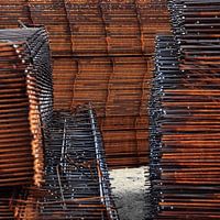 foto abstract van roestig ijzeren draadwerk in laag licht op een bouwplaats