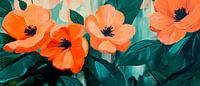 Levendige oranjekleurige bloemen schitteren in rijke tinten en brengen een vleugje warmte en frisheid in elke kamer. De harmonieus gerangschikte bloemen stralen levensvreugde uit en geven de omgeving een uitnodigende sfeer. Ideaal voor in de woonkamer, waar ze kunnen dienen als middelpunt voor een gesprek, of in de keuken om de zintuigen te verlevendigen.