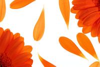 Gerbera's en gerberablaadjes op een verlichte ondergrond gefotografeerd. Decoratief beeld voor woo- en slaapkamer. Voor kleine prints tot en met behang. Fleurig beeld waar je blij van wordt.