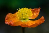 Een oranje klaproos met een geel hart