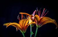 Koop dit bloemen kunstwerk Oranje lelies tegen een zwarte achtergrond van Rietje Bulthuis als print op canvas, aluminium dibond, (ingelijste) fotoprint, behang en ArtFrame. Voor jou op maat geprint in Fine-Art kwaliteit.