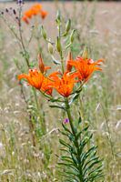 Roggelelie, Lilium bulbiferum subsp. croceum. Uiterst zeldzame akkerplant die ook nog in Nederland voorkomt. Hier gefotografeerd in het Wendland bij Govelin, Göhrde, Lüchow-Dannenberg, Niedersachsen, Duitsland.