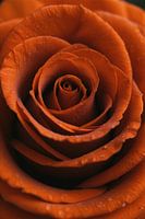 Ontdek de subtiele schoonheid van de natuur met deze close-up van een oranje roos, zorgvuldig vastgelegd na een vroege ochtend dauw. Elke fluweelachtige bloemblaadje ontvouwt zich zacht in een harmonie van warme, uitnodigende oranjetinten die overgaan in rijke, aardse bruinen. De delicate waterdruppeltjes versterken de levendige textuur en voegen een fris gevoel van ochtendgloren toe. Dit ontwerp, perfect voor zowel moderne als klassieke interieurs, brengt een stukje van de serene buitenwereld in elke ruimte. Laat je meeslepen door de details en de diepte die deze foto biedt, een tijdloos stukje natuur voor bij jou thuis.