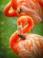 2 oranje/roze flamingo's op het caribische eiland Guadeloupe.
