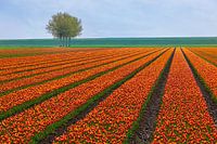 In het uiterste noorden van de provincie Groningen, tussen de dorpen, Termunten, Termunterzijl, Dallingeweer en Woldendorp ligt een veld vol met kleurrijke oranje tulpen in de polder met tevens 4 eenzame boompjes in het voorjaar.