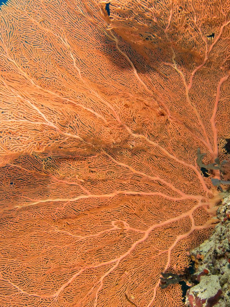 Er bestaan vele harde en zachte koralen. Het oranje waaierkoraal is een hard koraal dat groeit aan de zijkanten van een koraal rif. Het kan enkele meters groot worden, maar heeft lang nodig om te groeien.