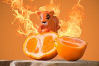 Ik doe mee met de Foto7Daagse. Daarvoor maakte ik bij het thema oranje deze foto. Een heerlijke zoetzure mandarijn van de markt. Op een ruwe houten boomstronkplank. Met een duplotijger. Op de achtergrond bewerkte ik het oranje vuur en de achtergrond was wit, maar heb ik oranje gemaakt.