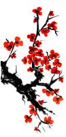 traditioneel aquarelschilderij van oranje gekleurde bloemen die aan een boom groeien in Japanse stijl.