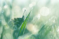 Het vroege ochtendzonnetje schijnt op deze prachtige vlinder. Zittend in zijn natuurlijk groene leefomgeving wacht de vlinder op de warmte van de zon om weg te kunnen vliegen. Een Nederlands beeld van een schitterende oranjetipje omringt in dauwdruppels als groene oase. Dit sprookjesachtige beeld is uniek voor aan elke muur.