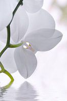 Witte orchidee met waterreflectie