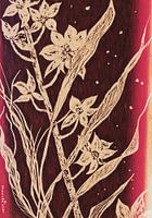Pentekening / Orchideeën / Wit / Zwart-Wit / Zwart / Paars / Roze / Beige/ Blad / Bladvorm / Bloem / Plant / Tropisch / Sierlijk / Kleur / Figuratieve kunst / Digitaal bewerkt/ Stilleven