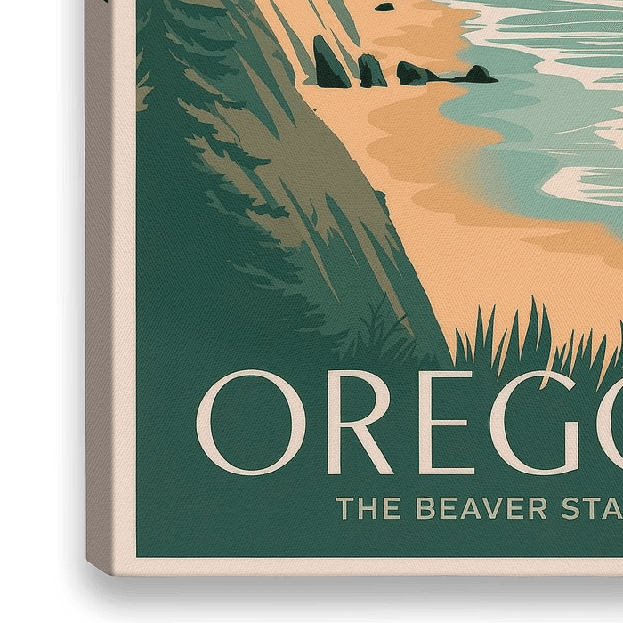 Koop dit landschapskunstwerk Oregon Vintage Reisposter van Poster Art Shop als print op canvas, aluminium dibond, (ingelijste) fotoprint, behang en ArtFrame. Voor jou op maat geprint in Fine-Art kwaliteit.
