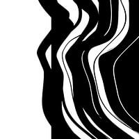 Minimalistisch abstract van organische, vloeiende vormen en lijnen in zwart op wit. Japanse, scandi, nordic stijl kunst voor moderne interieurs.