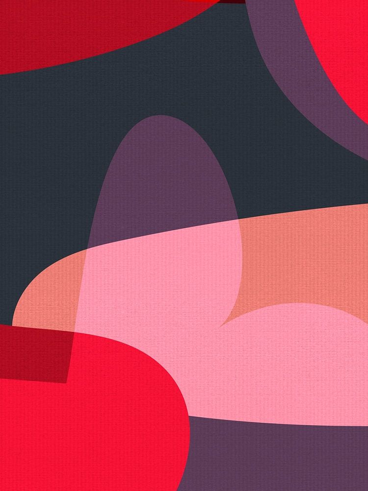 Deze serie kleurrijke moderne abstracte schilderijen viert warmte, energie en organische stroming. Elk kunstwerk bestaat uit gelaagde vormen in roze, terracotta, koraal, violet en gedempt rood, waardoor een levendig en harmonieus ritme ontstaat. De zachte rondingen, overlappende texturen en vloeiende lijnen roepen natuurlijke landschappen en levendige beweging op, terwijl het warme palet een gevoel van comfort en vitaliteit geeft.