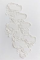 Dit minimalistische abstracte kunstwerk bestaat uit witte reliëfvormen die als organische lagen over het oppervlak lijken te liggen. De structuur is opgebouwd uit meerdere lijnen en randen die samen een natuurlijk en bijna steenachtig patroon vormen. Door het gebruik van één kleur ligt de nadruk volledig op textuur, vorm en lichtval,…