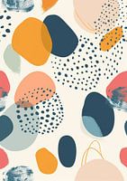 Een plat ontwerp met organische vormen in heldere kleuren. De ontwerpen bevatten afgeronde ovalen en cirkels, die gerangschikt zijn in een naadloos patroon. Deze vormen vangen de essentie van de natuur en geven het geheel een dynamische uitstraling. Het ontwerp, geïsoleerd op een witte achtergrond, is gemaakt in een eenvoudige…
