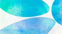 Een abstract schilderij met organische geometrische vormen in moderne aqua kleuren met een impressie van Scandinavische kunst uit Noord-Europa met een vleugje Japandi en retro vintage cultuur.